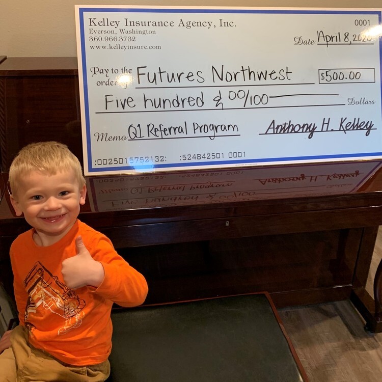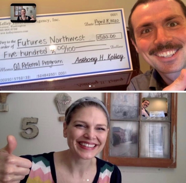 This is what a personal delivery looks like during the COVID-19 pandemic! We are so happy we were able to share the good news that we donated $500 to Futures NW because of our community's support and referrals.